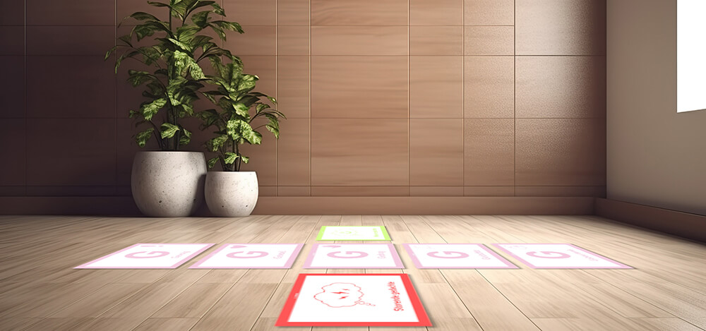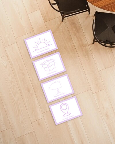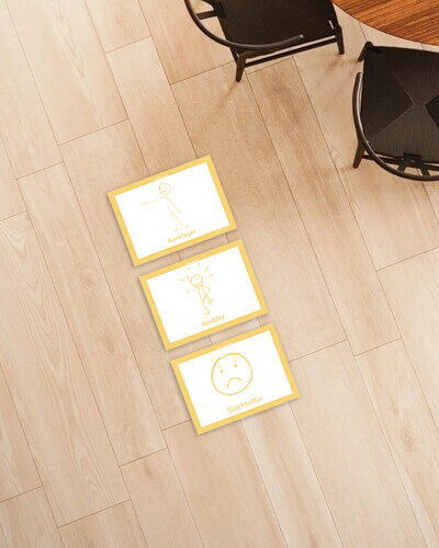 Ik selecteer vooraf vijf kaarten en leg ze omgekeerd op tafel. Je hebt hierdoor een ander soort gesprek met het kind, en ik zie al snel een glimlach verschijnen.